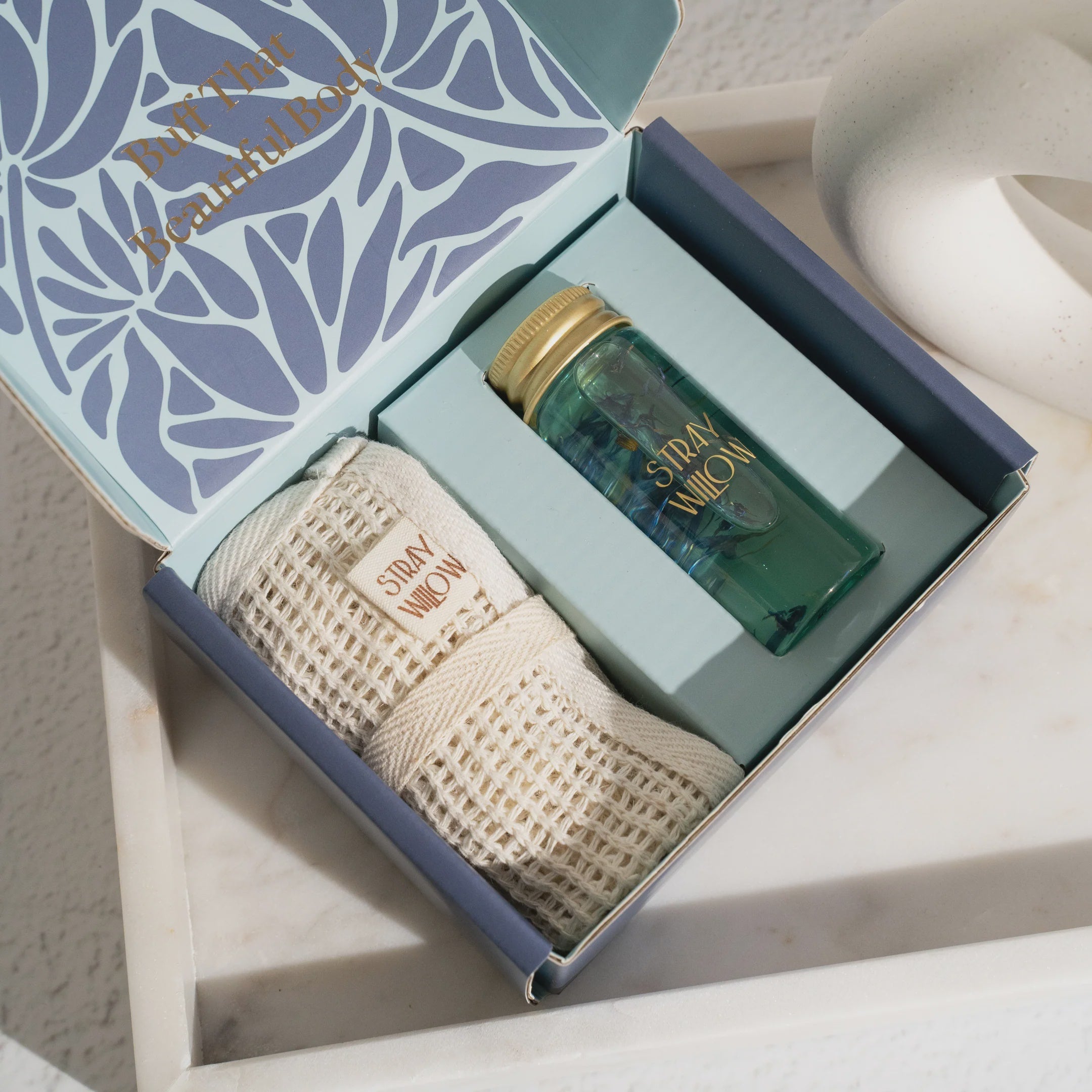 Indulge in the luxurious experience of Stray Willow's Silk Body Kit featuring the exquisite Idle Falls Body Oil. This all-in-one pampering set simplifies your Body Care routine, unveiling your skin's natural radiance with a dreamy combination of a nourishing Body Oil Mask and an exfoliating Body Cloth. This Body Facial Kit is designed to elevate your self-care sessions and leave you with a glowy, luminous look.