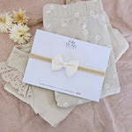 These go-with-everything soft white pinch bows are 5cm x 3cm; perfect for styling those mini pigtails and up-dos. With heat sealed edges for a smooth, neat finish and a, soft faux suede-like surface, they are available on 3.2cm alligator clips or soft, stretchy OSFM headbands.