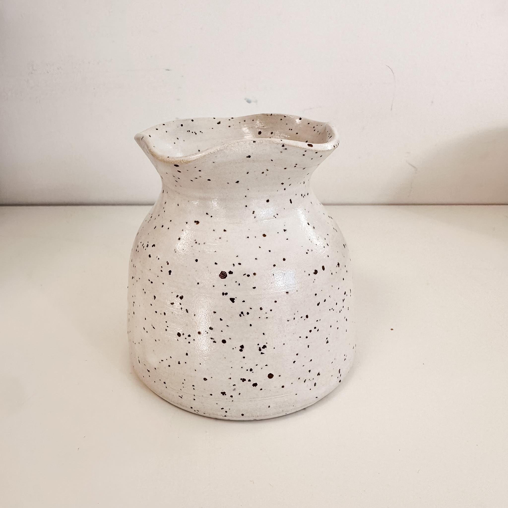 Speckled stoneware with white glossy glaze. Avaliable in small medium and large. No two bud vases are identical.