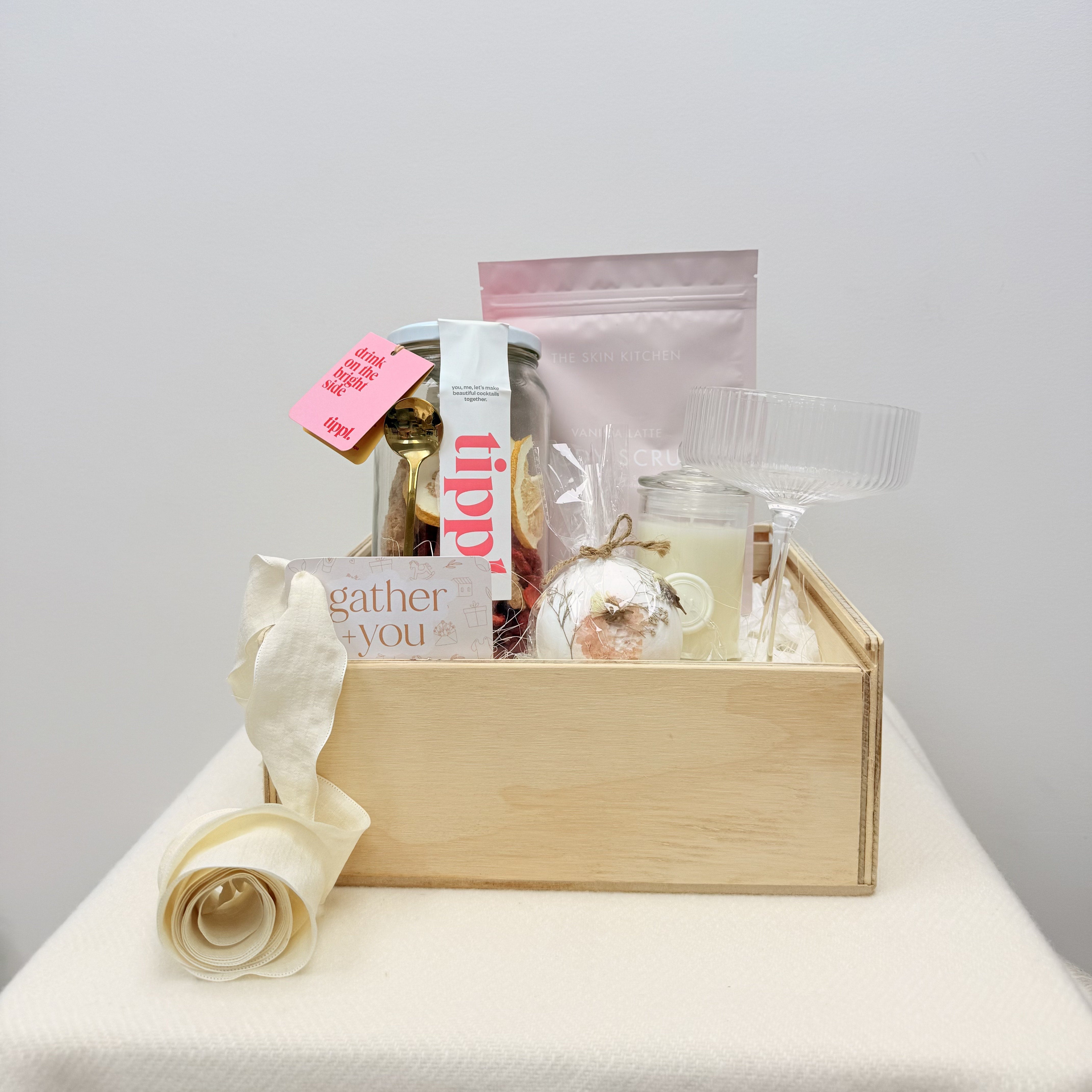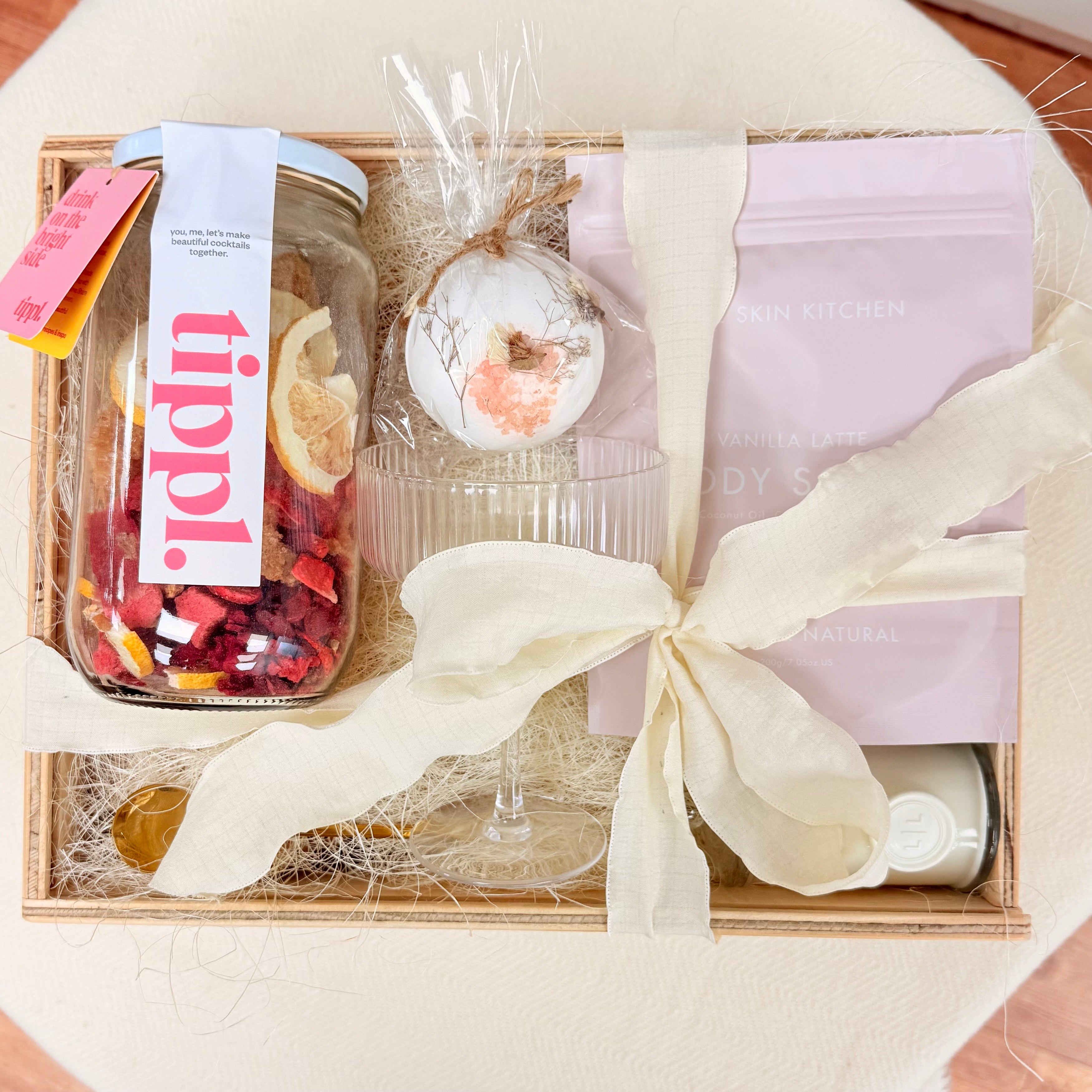 For lovers of long baths, pretty cocktails, and the kind of nights that don’t require leaving the house, The Wind Down is your go-to ritual for relaxed luxury. Whether it’s self-care Sunday or a midweek reset, this box brings the sparkle, the scent, and the soak.