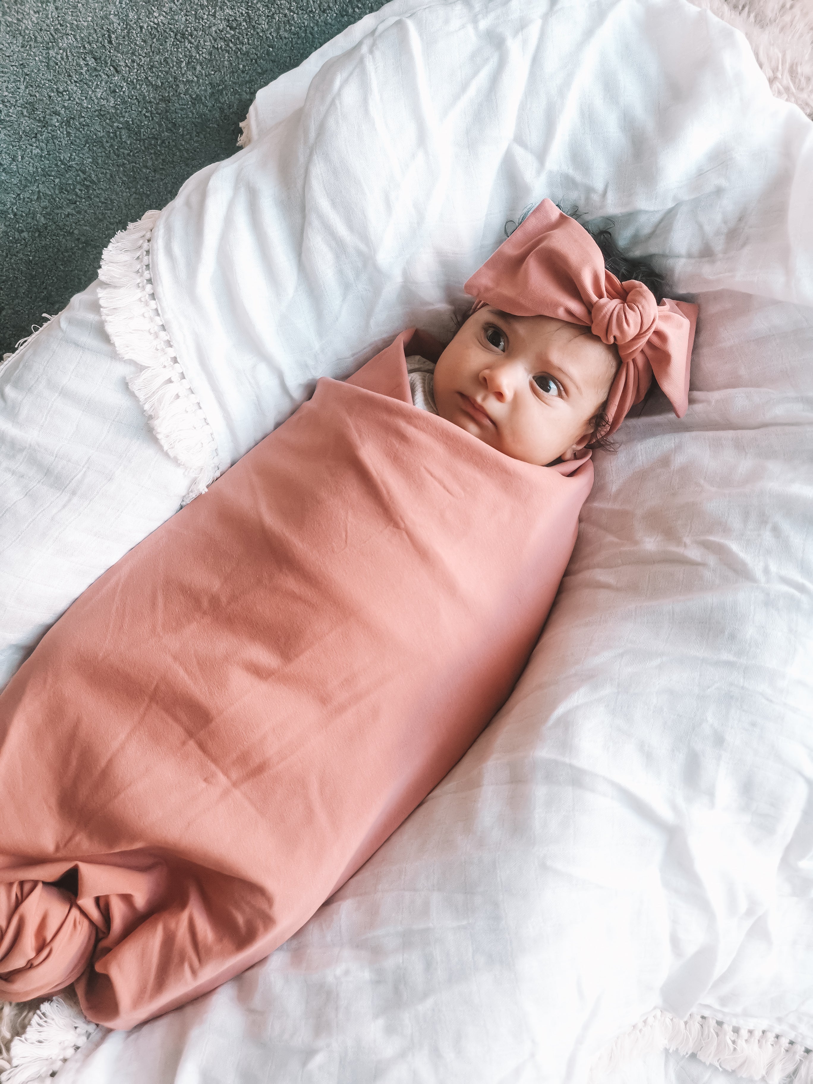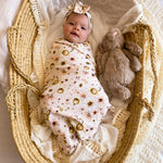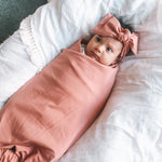Our beautiful Organic Cotton Topknot Headbands are the perfect accessory for your little ones outfit or to match with their Remy&Co Stretchy Swaddle.