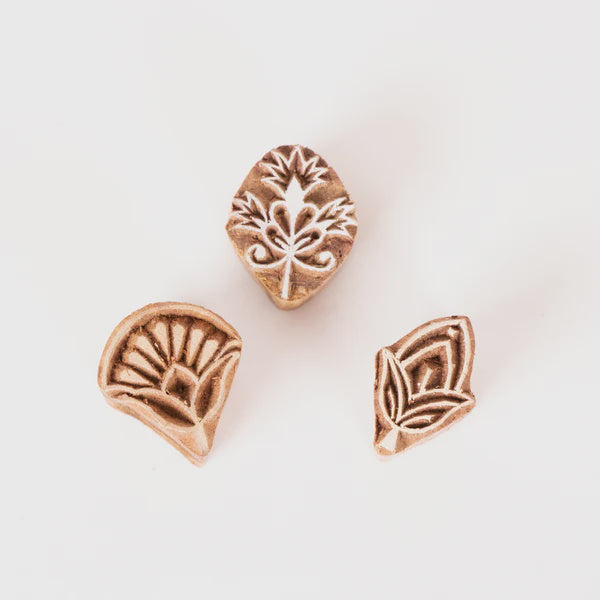 These cute printing blocks are hand carved in a variety of flower bud forms.