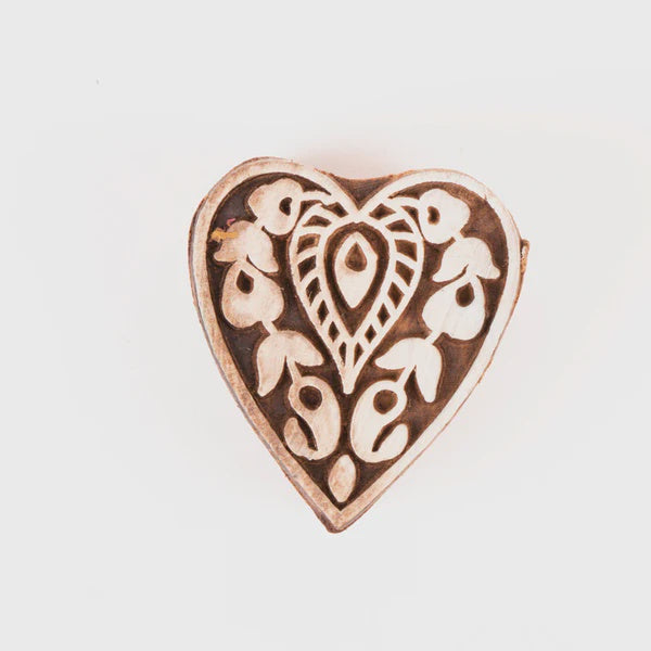 This gorgeous heart shaped printing block is hand carved with a traditional design.