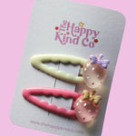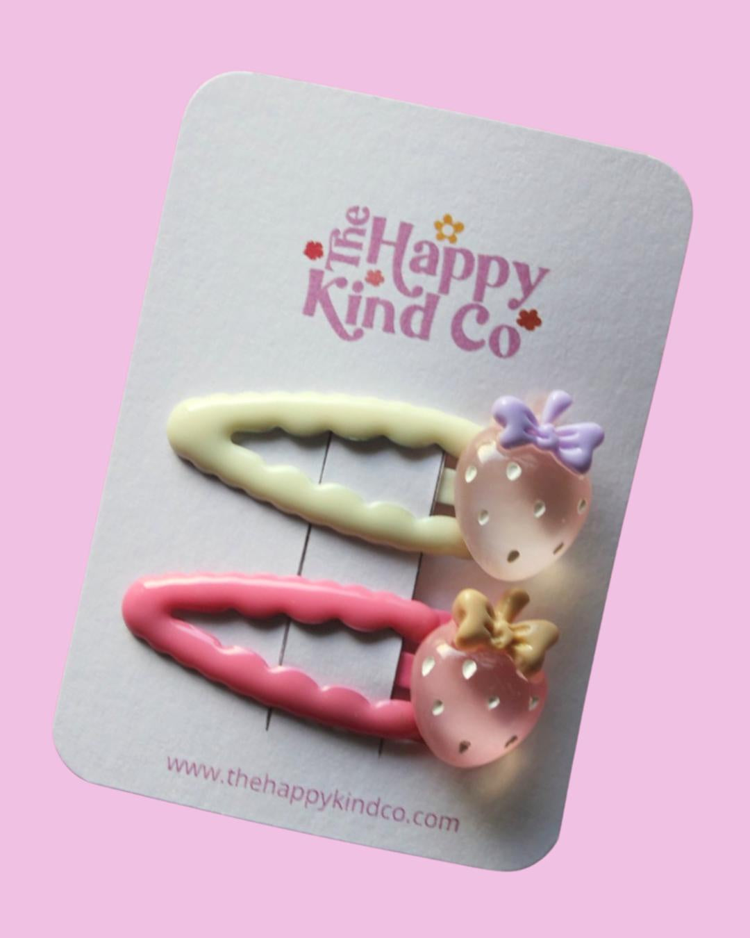 Our Wavy Berry Clips are just the cutest, creamiest shade of white, pink and pop of green goodness!