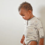 Bodysuit made from a buttery soft blend of bamboo and organic cotton. Natural fibres are breathable and gentle on your baby's skin.
