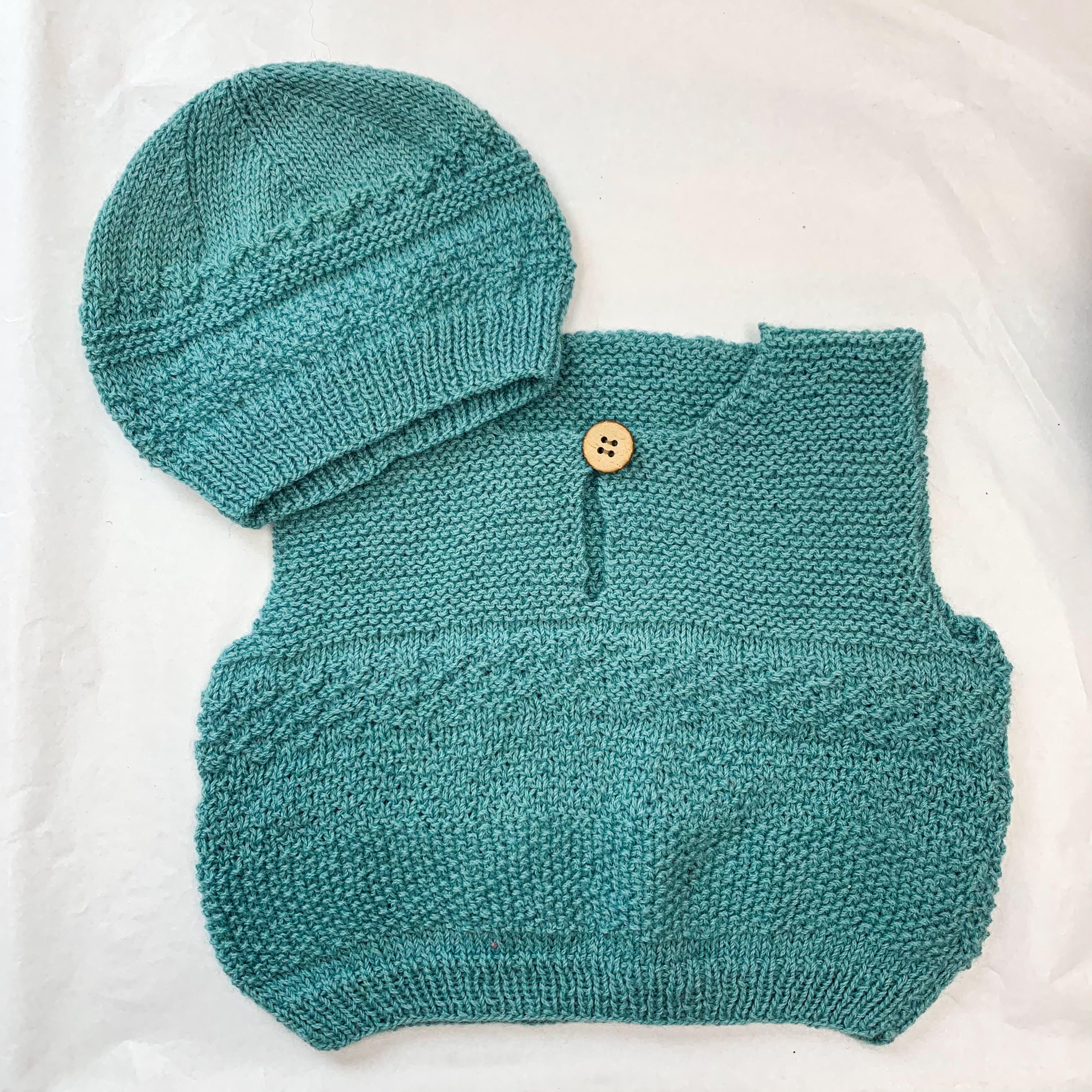 Wool Ribbed Vest + Hat Teal - 3-6M